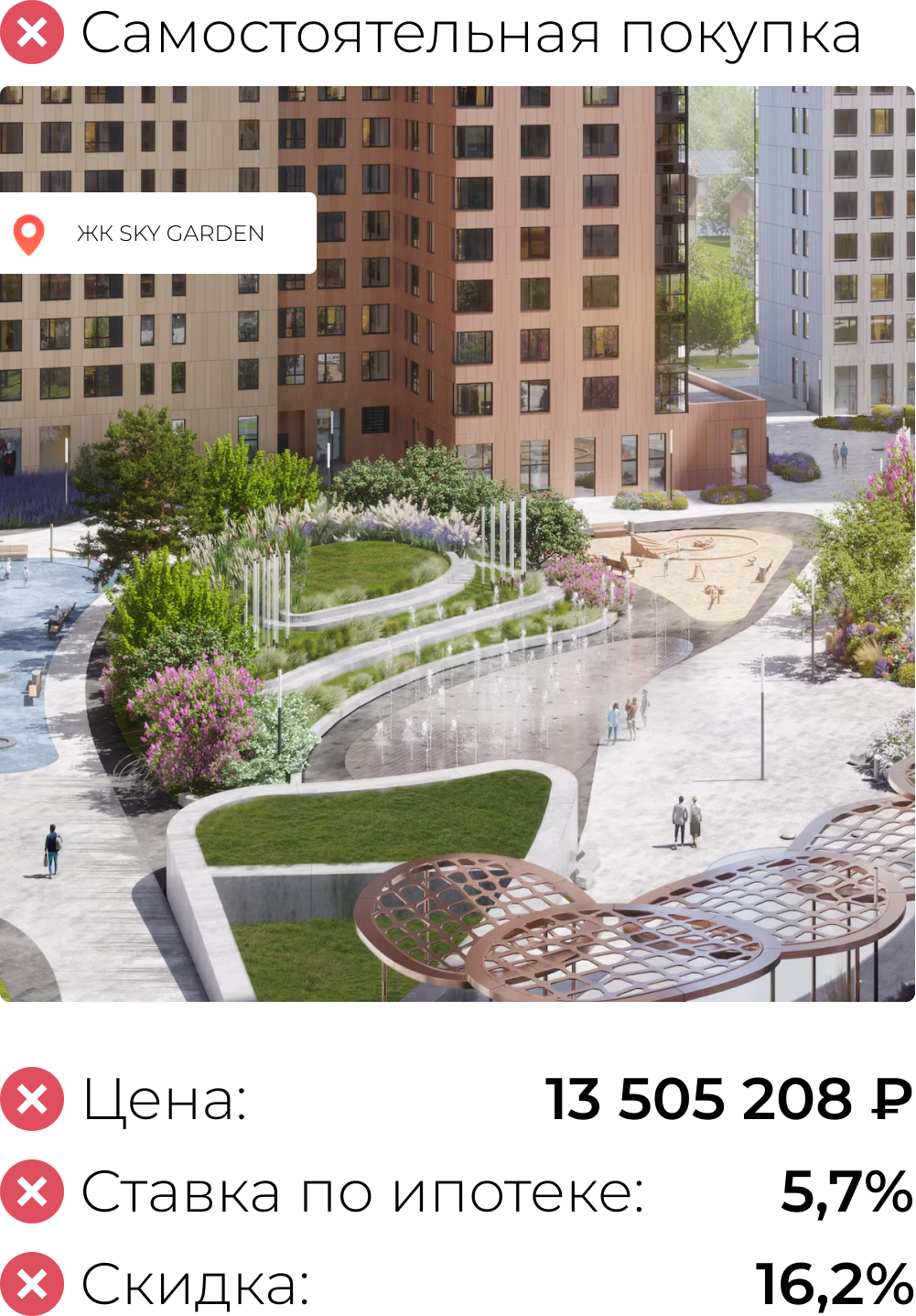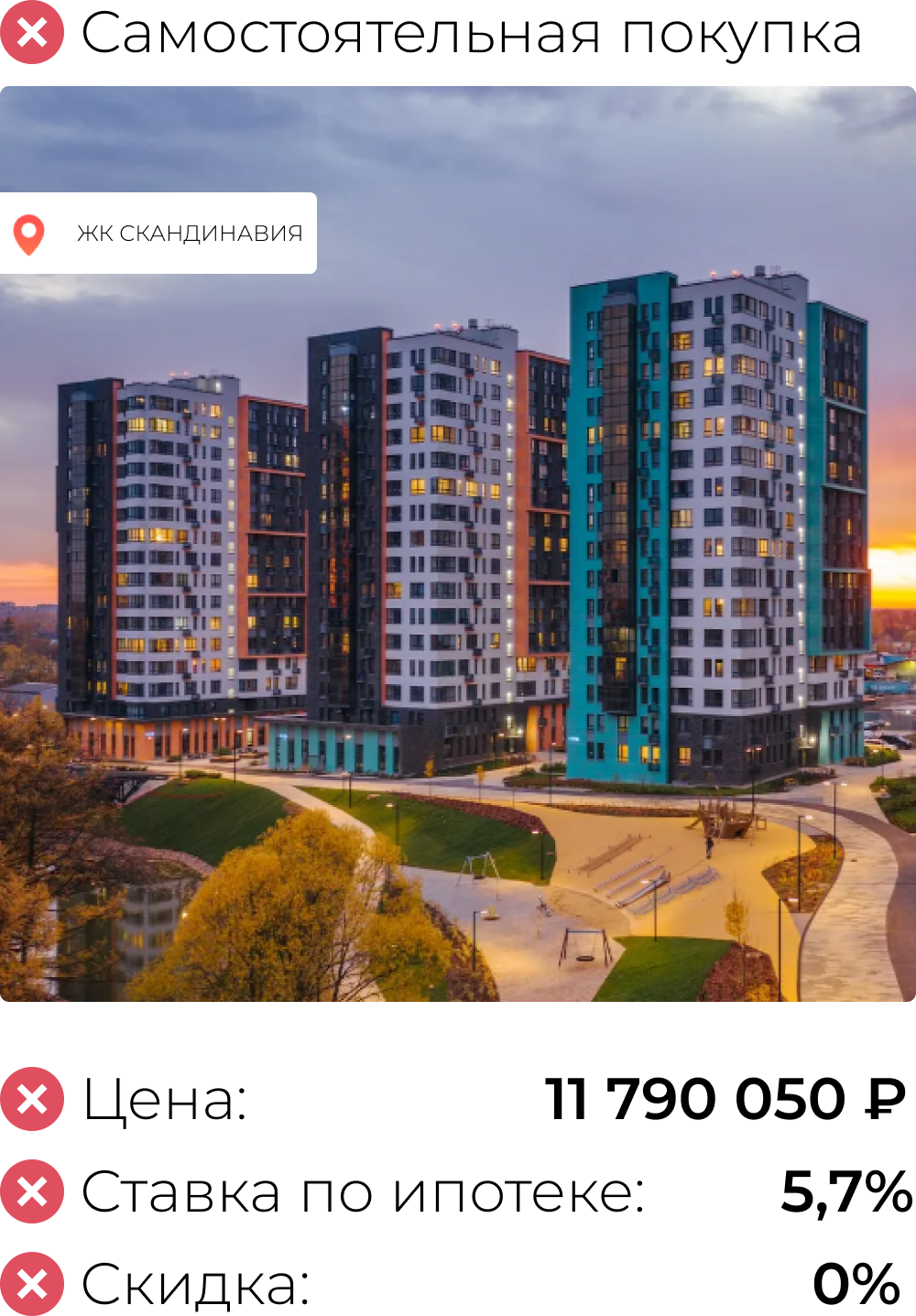 экономии за счет персональных скидок от застройщика и одобрения лучших условий по ипотеке
